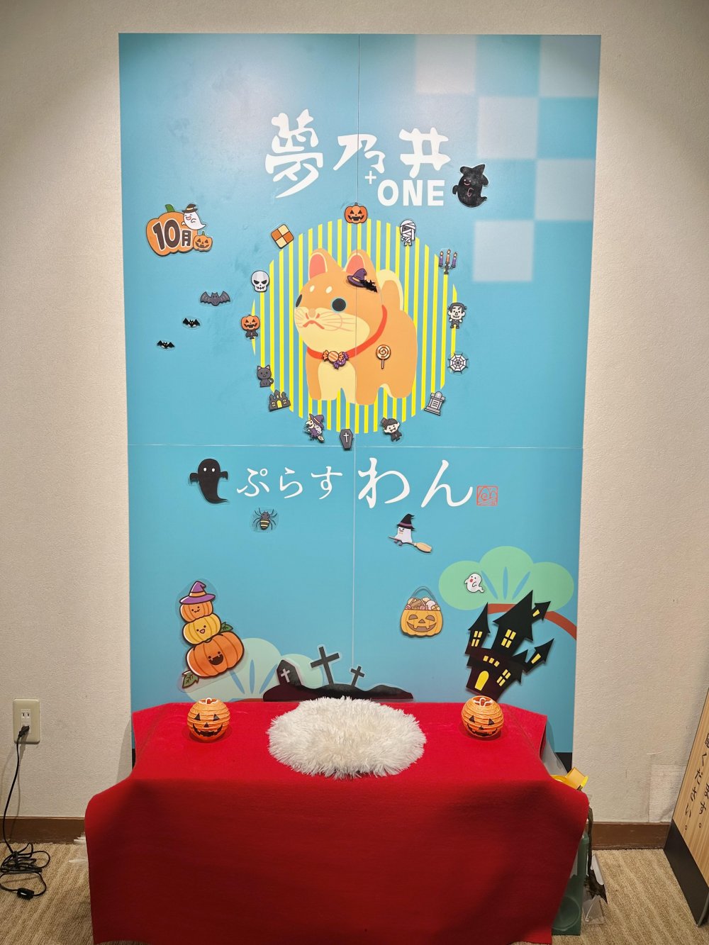 パネルのわんちゃんも魔女の帽子をかぶって、