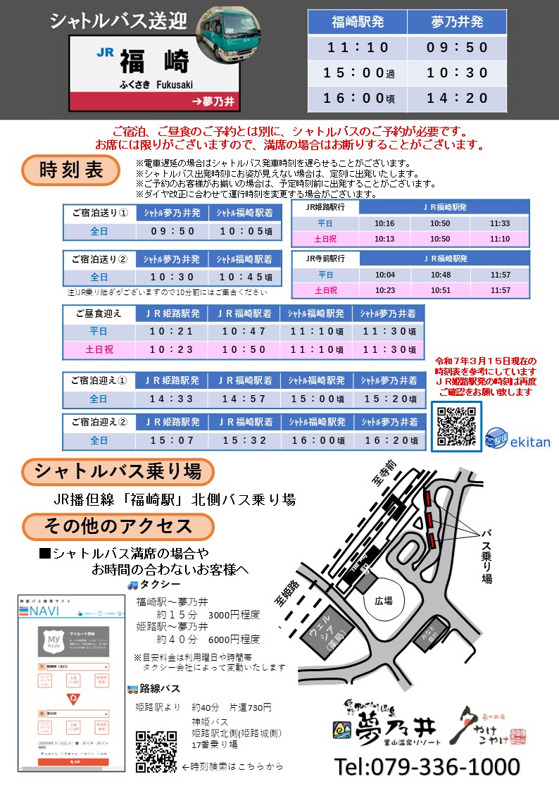 <昼食利用> <宿泊利用> 夢乃井9:50発 |