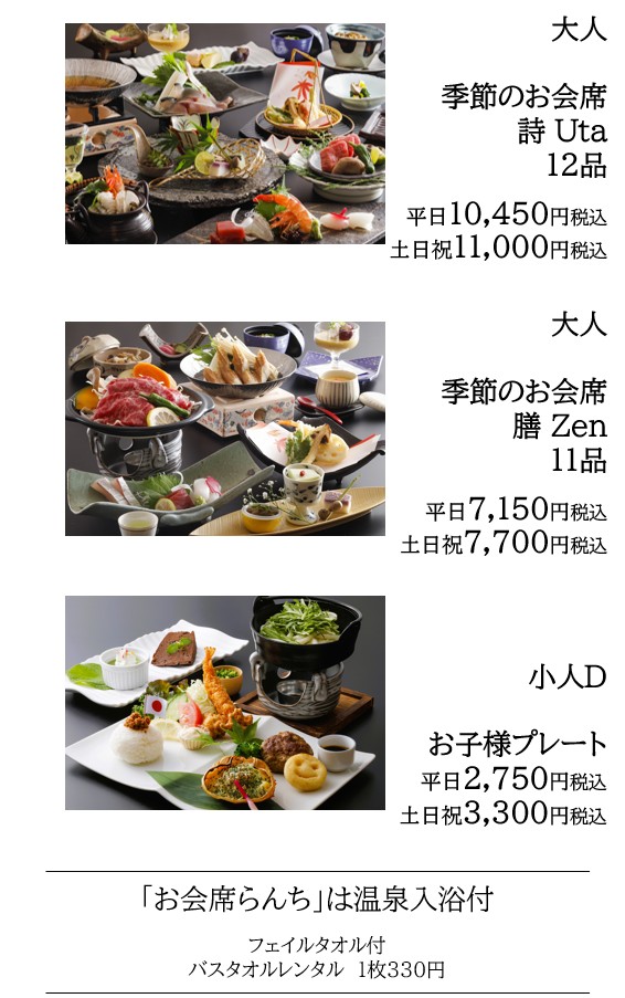「お会席らんち」 旬の食材をふんだんに使用したお会席を |