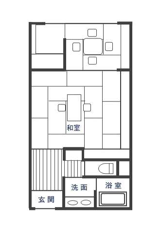 翔露館(しょうろかん)本館、4階~6階に位置し、各階に1室ずつ、全部で3室のみ。 7.5畳の和室を中心に、バス・トイレ・広縁を備えた非常にコンパクトな客室。 ひとり旅やご夫婦での滞在におすすめです。 |