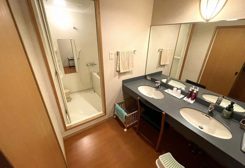 設備 冷蔵庫・温水洗浄トイレ・テレビ・電話・湯沸かしポット・金庫・内風呂・Wifi完備 シングルベッド×2 アメニティ シャンプー・ボディソープ・化粧水・タオル・バスタオル・歯磨きセット・ヘアブラシ・浴衣・スリッパ・雪駄 【女性】コットン・シャワーキャップ 広さ・定員 56㎡・定員4名 備考 <禁煙> ミキハウス子育て総研 認定部屋 |